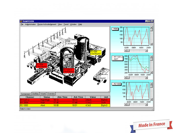 产品描述RAMVISION是一个数据获取平台,可满足一个中型的辐射监测系统的要求,开放式构架,可以接入气象站等其他数据源。 产品特点• 获取并储存监测仪测量数据与通道状态• 输出测量结果与状态• 实时显示当前数值与历史数据• 状态报警输出
